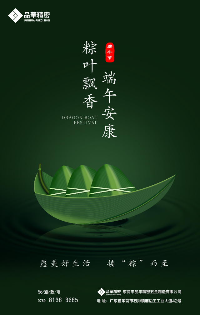 端午與春節、清明、中秋并稱為中國四大傳統節日,“端午佳節”名詞最開始經常出現于西晉的《風土記》: ”仲夏端午謂五月五日也,俗重此日也,與夏至同。”后因戰國時期的楚國詩人屈原在五月五日跳汨羅江自盡,人們亦將端午節作為紀念屈原的節日。在濃濃的粽香飄來之際,品華精密全體員工祝各位新老客戶工作任務順利進行,萬事如意,端午安康!